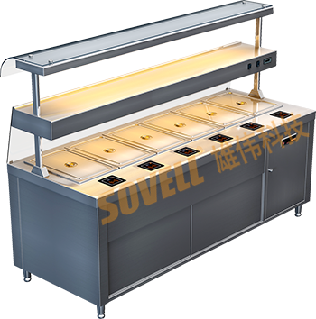 [簡介]功能特點:1.整板工藝,無拼縫無焊痕;2.真材實料,采用1.2毫米304不銹鋼;3.自動上水,電動下水;4.雙區域照明系統,頂層保溫,售菜區明亮菜品色澤;5.柜體內走線由走線槽
