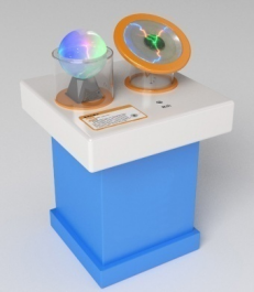 功能概述:展項由輝光盤、輝光球和展臺組成。參與者用手在盤(球)的表面輕輕觸碰或移動,可吸引或引導(dǎo)盤(球)內(nèi)輝光的運動,探索輝光放電現(xiàn)象。