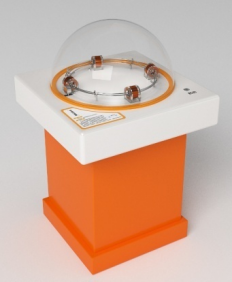 展項描述:展項由環形支架和磁懸浮燈泡構成。觀眾走近展臺,會看到燈泡懸浮在空中;按下“啟動”按鈕,可以點亮懸浮在空中的燈泡。