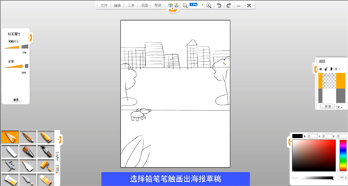 創建一個空白圖層,選擇鉛筆筆觸畫出海報草稿