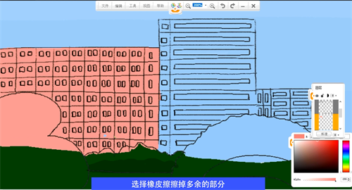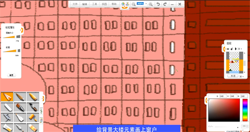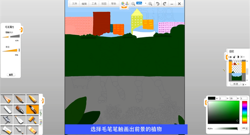 選擇小草筆觸畫出背景的草地,選擇樹葉筆觸畫出背景的大樹樹冠