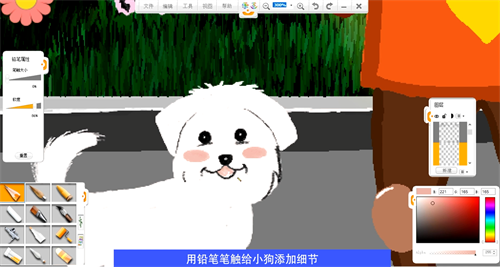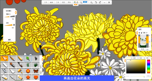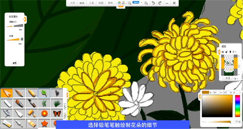 選擇鉛筆筆觸繪制花朵的細節,再畫出花朵的高光