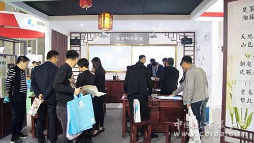 智慧書法教室人氣爆棚,吸引眾多參展嘉賓前來參觀體驗