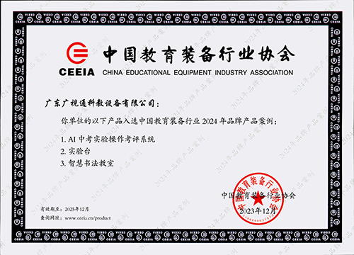 近日,中國教育裝備行業協會公示了中國教育裝備行業2024年品牌產品案例名單,廣視通AI中考實驗操作考評系統、實驗臺、智慧書法教室等三款產品成功入選。