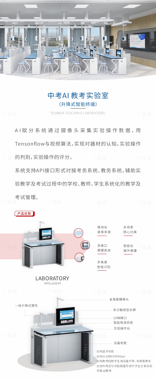 教育裝備數字化一站式解決方案,智能理化生實驗室、中考實驗操作考評系統、實驗仿真與教學系統、數字書法教學云系統、中學AI教考實驗室(升降式/便攜式智能終端)、頂裝/吊裝實驗室、探究實驗室、科學實驗室、人工智能科創實驗室、智慧書法教室、數字音樂教室、美術教室、數字地理教室、數字歷史教室、心理咨詢室、閱覽室、舞蹈室、陶藝室、烹飪教室、通用技術實驗室、勞動教育功能教室、科普探究等