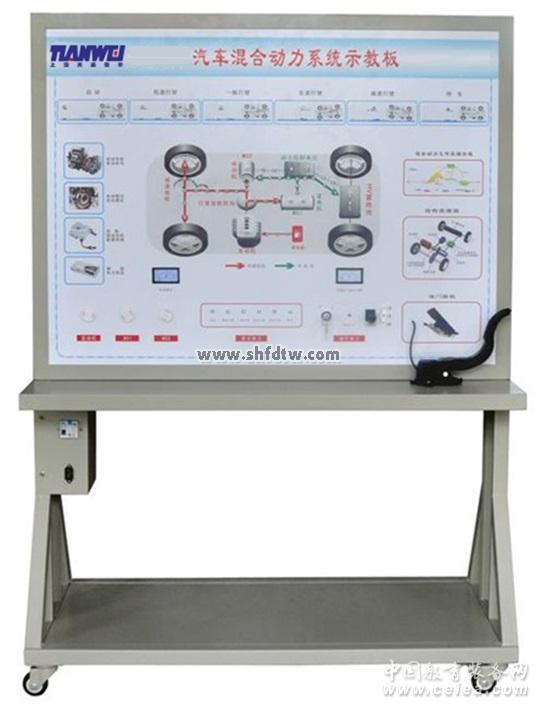 2、示教板面板采用4mm厚耐腐蝕、耐創擊、耐污染、防火、防潮的高級鋁塑板,表面經特殊工藝噴涂底漆處理;面板打印有永不褪色的彩色電路圖與工作原理示意圖;學員可直觀對照汽車混合動力系統結構原理圖和實物,認識和分析汽車混合動力系統的工作原理。