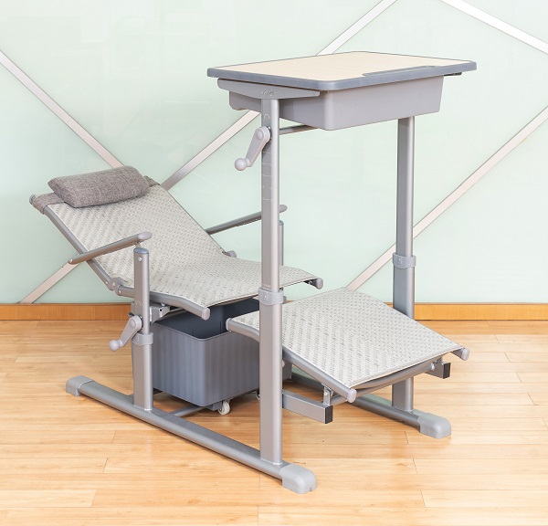 3、課斗規格:360mm*450mm*100mm±3mm,PP塑料一次成型,課桌底下前部設置藤質躺板。