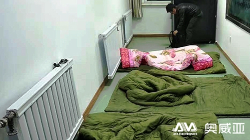 26間高清錄播教室分散在州屬貴德縣、貴南縣及興海縣,有一回奧威亞技服團隊到興海縣溫泉鄉寄宿制小學做高清錄播設備調試,坐施工商的車從西寧出發,歷時8個鐘頭抵達學校。為了能在第二天上課前完成調試工作,奧威亞技服團隊爭分奪秒接線調試,因第二天需要給老師做培訓,晚上只能留宿。鄉村沒有住宿店家,幾個人在教室打起了地鋪。海南州全年平均氣溫在4℃左右,苦寒難消,彼時外面還下著大雪,難以想象以地為席的他們是如何度過漫漫長夜。