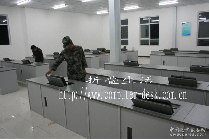 產品特點:一、折疊生活的兩用多媒體電子課桌號稱“聰明的電腦桌”,即在拉出鍵盤的時候,液晶顯示器自動翻轉過來。合上顯示器的時候,鍵盤自動回縮到桌面下部。這樣做的好處是:1)拋棄了傳統的“升降機”模式,大大降低了擁有成本和維護成本,增加了產品的安全性;2)老師和學生之間沒有顯示器阻隔,教學效果更好;3)多媒體模式和非多媒體模式切換快速,沒有噪音;4)釋放了大量的桌面底部空間,舒適感增加。二、主機托架可掛在桌面下面,可以輕松摘下。翻轉式優點1:聰明的電腦桌◆撥動按鈕,液晶屏幕自動翻轉。◆合上屏幕時,鍵盤自動回復。翻轉式優點2:懂人心意的電腦桌◆撥動按鈕時,有打開翻轉桌面的扭力力矩助力,輕松翻轉。剛打開速度很快,以縮短打開時間。翻轉式優點3:溫柔的電腦桌◆打開桌面時,翻轉桌面在接近最合適視線的位置時,阻尼突然介入,讓翻轉桌面非常輕柔地停止翻轉。◆合上翻轉桌面時,阻尼一直在作用,誰也無法粗暴地合上桌面,同時最后會發出清脆悅耳的一聲“卡塔”,提示使用者桌面已經被鎖住。翻轉式優點4:完全的機械結構實現◆以上過程不但全靠巧妙的機械結構實現,大大提高了安全性,停電的時候也可以關閉。◆停電時打開的功能雖然具備,但多余。翻轉式優點5:低廉的擁有成本◆視材料、做工、性能、工期、運輸距離的不同,每人位的擁有成本在900-1350元之間,是升降式電腦桌擁有成本的四分之一。翻轉式優點6:不占用桌面底部空間◆做普通課桌時,桌面下部無任何占用。翻轉式優點7:關鍵人體工學尺寸可由用戶自行調節◆液晶顯示器的工作狀態的前后位置、上下高度和仰角,以及拉鍵盤的阻力、翻轉過程的阻尼大小,也統統可以由用戶輕松調節,無需我方安裝工人介入。翻轉式優點8:不阻礙師生視線交流◆液晶顯示器工作狀態下,液晶超出桌面小于17厘米(這個尺寸用戶可以自調節),不但不阻礙師生視線交流,而且,連學生桌面上擺放的物品,和學生的小動作,老師都可以一目了然。