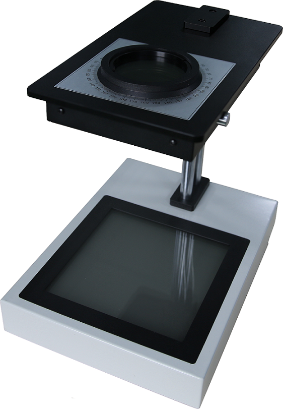 規(guī)格: 1、偏光應力儀光場亮度≥120cd/m2 (LED燈10W) 2、偏光應力儀偏振元件任何一點的偏振度大于等于百分之九十九 3、該款應力儀偏振場200*200mm 4、偏光應力儀構(gòu)造:檢偏鏡和起偏鏡之間分別置入1/4波片及全波片(波長為565nm),波片的慢軸與起偏鏡的偏振平面成90度 5、檢偏鏡最上面有旋轉(zhuǎn)角度的測量裝置(刻度值為1度,最大測量范圍為180度)