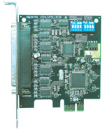 A124I:2個RS232口,2個RS422/485口支持地電位隔離,PCI Express總線,每個口最高達115.2Kbps,DB9&DB25針頭