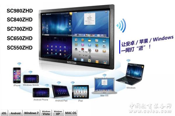 全球首推的4倍高清84英寸觸摸液晶一體機。該產品以LED為依托將電腦、電視、音響、投影、白板融于一體,摒棄了傳統多媒體教學集成匹配設計的繁瑣,實現了同一個平臺上的智能互動教學。