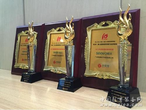 本屆盛會歷時四個多月的時間甄選出在2017年度有突出貢獻(xiàn)的教育行業(yè)內(nèi)的優(yōu)秀企業(yè)代表,通過品牌盛會發(fā)掘優(yōu)秀品牌和塑造高端品牌,引導(dǎo)行業(yè)健康良性發(fā)展。其中,教育裝備行業(yè)知名品牌希沃榮耀而歸,一舉斬獲了“2017年度智慧教育顯示設(shè)備影響力品牌獎”、“2017年度智慧校園創(chuàng)新獎”以及“2017年度企業(yè)社會責(zé)任獎”三個獎項,成為會場的焦點(diǎn)。
