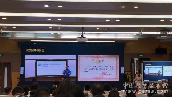 翔云小學的朱老師為大家分享了希沃易課堂在智慧校園中的實際落地應用案例,以及其對平板教學理性、深入的思考成果。朱老師用實際案例為現場老師深入淺出地展示了如何將希沃易課堂與實際課堂教學進行融合,以及如何在課堂中充分利用平板、最大化地提升教學效率和教學質量。
