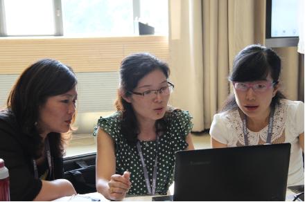 “這里你知道怎么講解嗎?”“嗯,知道,我給你講一下吧�!薄拔乙猜犚幌�,這方面我也不太懂。”幾位老師共同學習、共同進步。