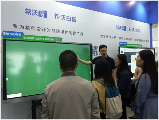 本屆教博會上,希沃的150臺智能交互平板,主要用于展會工作坊說課、示范課、參展商方案展示等。現場的許多老師早已是希沃產品的使用者,不僅不需要志愿者指導使用,還自如地開啟與使用希沃白板、希沃授課助手等應用軟件,并向其他老師介紹信息化應用為自己的教學帶來的改變。