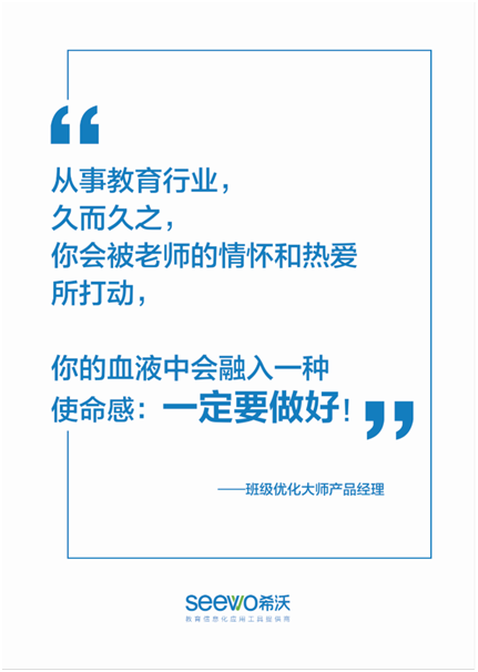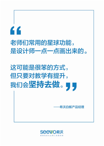 正由于希沃人的用心專注、精耕細(xì)作,才實(shí)現(xiàn)了一次次的突破創(chuàng)新、誕生了一個(gè)個(gè)備受師生喜愛的產(chǎn)品、打造了一次次細(xì)致入微的服務(wù)。