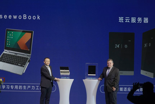 2.希沃聯(lián)合英特爾正式發(fā)布seewoBook、班云服務(wù)器。視源股份未來教育集團總裁黃明寒與英特爾物聯(lián)網(wǎng)事業(yè)群零售事業(yè)部副總裁Jose