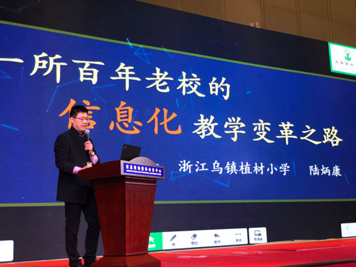 6.希沃協(xié)辦首屆中小學(xué)教育裝備應(yīng)用創(chuàng)新校長論壇暨優(yōu)秀案例頒獎活動,希沃黃明寒在大會啟動儀式上致辭。同時,烏鎮(zhèn)植材小學(xué)副校長陸炳康以希沃信鴿、希沃白板、班級優(yōu)化大師等工具的實際應(yīng)用為基礎(chǔ),進行了《一所百年老校的信息化變革之路》的主題分享