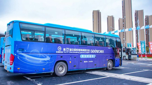 8.希沃以獨家冠名商的主人翁精神,為遠道而來的參展伙伴提供貼心的免費接機巴士,并精心為每位觀展者準(zhǔn)備參會指南。