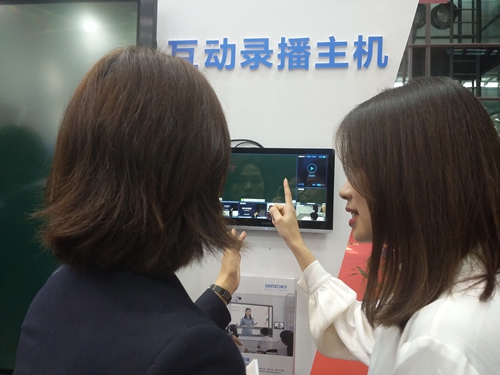 “另外在本次展會上,希沃帶來了交互智能平板、希沃云班牌、班級優化大師等產品,其中希沃云班牌、希沃易課堂、希沃互動錄播是希沃參展主打產品,還有希沃智慧黑板、記憶黑板。讓教室環境與科技同步,讓教師與科技同步,將智慧和科技結合。現時教育行業產品變化迅速,一線教學對應用工具的需求從單一變得多元化,但希沃作為專業的教育信息化應用工具提供商,在堅持為教育信息化的發展提供實用易用的應用工具的前提下,致力成為千萬教師信賴的教育科技品牌。”