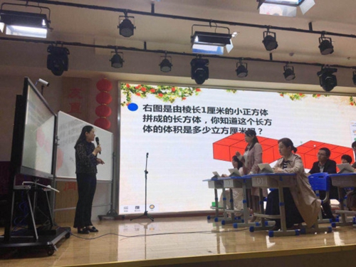 宿州一小的經曉利老師,以《長方體的體積》展開,通過分組競賽、公式與形狀等功能與學科工具,將數學運算與空間形狀相結合,形象地展示了長方形的體積計算過程。