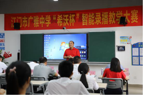 據悉,江門廣雅中學自2018年8月建成之初便進行智慧校園建設的全面布局,全校已為上百個班級部署交互智能平板、希沃交互智能錄播、希沃云班牌等信息化設備,超過80%的教師應用交互式課件希沃白板進行信息化教學,并常態化應用希沃交互智能錄播,與日常教學教研深度結合。