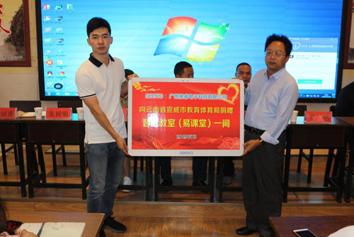 隨后,希沃云南辦事處總經(jīng)理羅然向宣威市教育體育局捐贈(易課堂)智慧教室一間,宣威市教育體育局信息教育中心主任朱樹明同志接受了捐贈。