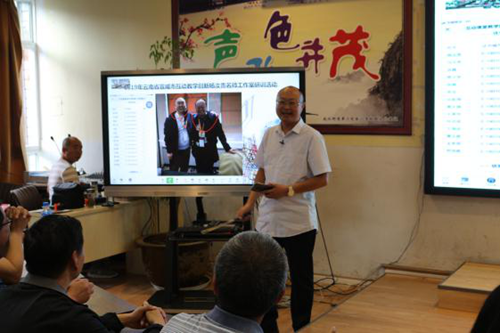 儀式開場,由希沃云南辦事處總經(jīng)理羅然與宣威市互動教學(xué)創(chuàng)新楊汝貴名師工作室楊汝貴老師一同為工作室進行了揭牌。