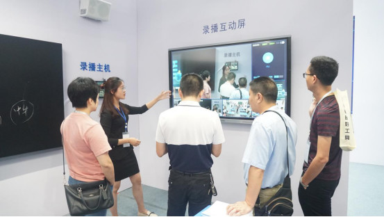 除了“高顏值”的屏顯產品,課堂內的希沃交互智能錄播、希沃易課堂也為許多觀展人士所看好。