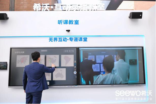 10月12日,在第77屆中國教育裝備展示會上,“千呼萬喚始出來”的希沃交互智能錄播全新發布,終于揭開了神秘的面紗。遠程互動助手、AI裸眼透視等新應用、新技術一經亮相,立即引爆希沃互動錄播教室展區。