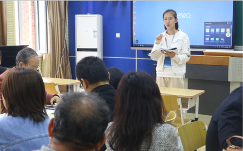 其中郅雪靜老師的生物課《在實驗室里觀察植物》令許多參會教師印象深刻。郅老師通過使用希沃易課堂的互動功能,讓學生們體會“要謹慎對待常識,用科學的依據來作判斷”的道理。郅老師在課后與參會教師們分享她的個人體會:“學生們是互聯網的原住民,信息化素養(yǎng)是很高的,可以在第一節(jié)課就熟練使用平板上課,反過來,這也激發(fā)了學生的‘課堂生成性’。”