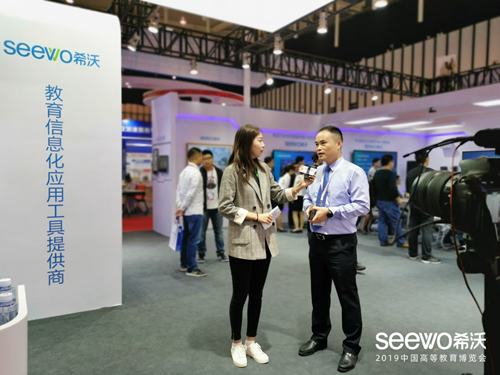 此次高博會,憑借科技性的高教方案,希沃吸引了多家權(quán)威媒體的關(guān)注與報道。在展會現(xiàn)場,慧聰網(wǎng)、中國教育電視臺分別對視源股份未來教育集團多媒體事業(yè)部總經(jīng)理周海生、希沃高職教全國總監(jiān)周曉鋒展開了深入訪談。
