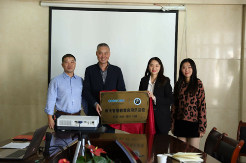 在希沃公司代表和學校代表的共同見證下,雙方進行了簽約并共同揭牌。