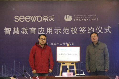 隨后,希沃合肥辦事處銷售總監(jiān)劉駿、合肥高新創(chuàng)新實(shí)驗(yàn)中學(xué)吳昌發(fā)副校長(zhǎng)共同簽署了希沃智慧教育應(yīng)用示范校合作協(xié)議。劉駿表示:“希沃有幸與合肥六中高新學(xué)校簽訂智慧教育應(yīng)用示范校合作協(xié)議,此次合作標(biāo)志著希沃將就信息技術(shù)與教育教學(xué)的融合應(yīng)用,與學(xué)校展開(kāi)更多領(lǐng)域的深度合作。我們將聯(lián)手加大對(duì)教師教學(xué)應(yīng)用的投入,以希沃學(xué)院為平臺(tái),通過(guò)信息化課程開(kāi)發(fā)、教研教學(xué)交流、智慧課堂打造等方式,共同促進(jìn)教與學(xué)的協(xié)同發(fā)展,促進(jìn)智慧教學(xué)在學(xué)校的落地使用。”