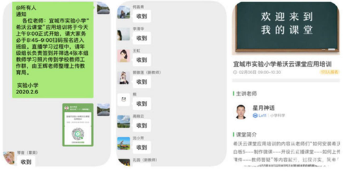 在前期大量的搜索查詢后,張站和同事針對(duì)各個(gè)線上教學(xué)平臺(tái)的操作、功能和資源,做了完整綜合的比較。綜合調(diào)研,加之宜城市此前舉辦過希沃白板課件比賽,學(xué)校老師們的反響都很好,最終選擇將「希沃云課堂」推介給學(xué)校,作為「這次大遷徙中的重要交通工具」。