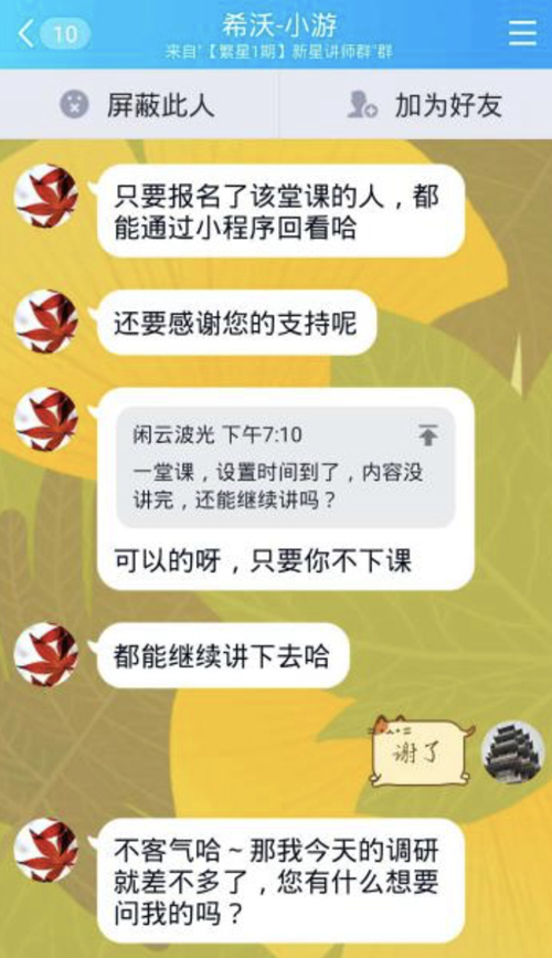 為全力保障師生使用體驗(yàn),希沃運(yùn)營(yíng)、客服小伙伴自發(fā)線上到崗。在區(qū)縣、學(xué)校、教授、學(xué)生家長(zhǎng)的線上直播群里,都能發(fā)現(xiàn)他們的身影。在這些活躍的群聊中,張站很欣慰地看到師生們對(duì)希沃云課堂的認(rèn)可。