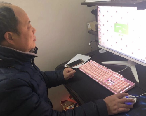 來自南街小學(xué)的60后教師——丁老師,在家聚精會(huì)神地用希沃知識(shí)膠囊錄制微課