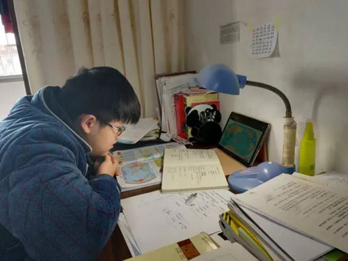 對這個“加長版”寒假何時結束、何時返校,鹽城市田家炳中學的高二(2)班郭同學也有著相似的苦惱。隨著假期時間一天一天過去,郭同學更加想念起學校上課時光,擔憂起自己的學習。讓他感到開心的是,為了響應疫情狀況下教育部發出的“停課不停學”號召,學校從2月初開始線上寒假作業答疑輔導,至3月份全面開啟線上教學。在這將近一個月的線上教學,帶給了他很多新體驗、新感受。