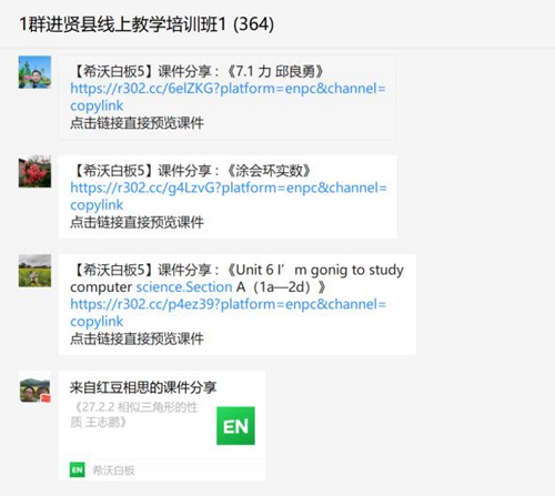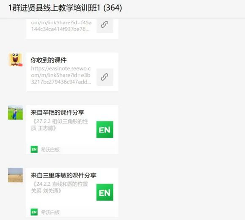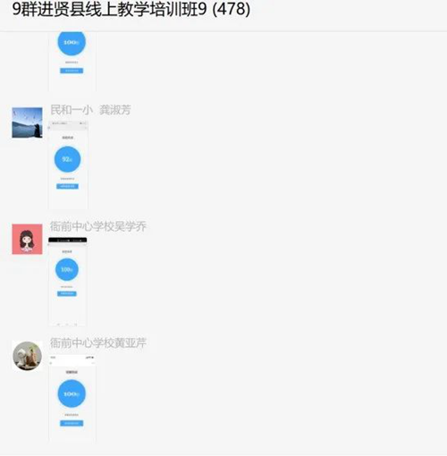 全縣參訓(xùn)的5000余名教師被分流到11個(gè)臨時(shí)組建的微信群。每個(gè)群中,由希沃講師專門運(yùn)營(yíng),并以直播教學(xué)、微信群交流答疑的方式進(jìn)行培訓(xùn)。參訓(xùn)的教師們認(rèn)真聽講、熱烈討論,課后及時(shí)進(jìn)行實(shí)踐操作,按時(shí)完成每堂課的作業(yè)。尤其是很多年齡偏大的教師,對(duì)于這些現(xiàn)代化的教學(xué)手段不甚熟悉,但他們克服重重困難,好學(xué)好問,在希沃講師們的熱心幫助下,順利通過培訓(xùn)考核。