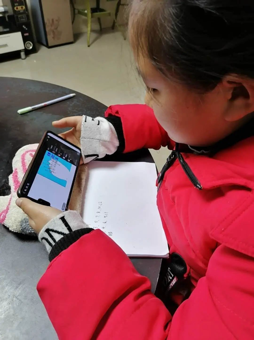 學生們通過掃描老師推送的希沃白板云課堂直播二維碼參與學習,對于孩子們來說,雖是與以往不同的課堂環境與授課方式,但聽到老師熟悉的聲音,還是讓同學們倍感親切。