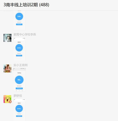 培訓(xùn)期間,老師們加入學(xué)習(xí)研討群,針對(duì)實(shí)踐過程中遇到的困難及時(shí)和同事們進(jìn)行交流,最后還根據(jù)縣教體局安排進(jìn)行考試,全校全體參培教師考試成績優(yōu)秀。