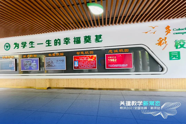 關(guān)于校園文化智慧化建設(shè),學(xué)校領(lǐng)導(dǎo)表示:“云屏相對(duì)于傳統(tǒng)的宣傳方式,更方便快捷,有海量的圖片資源可供選擇,通過(guò)手機(jī)小程序就能隨時(shí)發(fā)布信息。后臺(tái)管理也十分方便,比如由電教負(fù)責(zé)智慧校園宣傳,教務(wù)負(fù)責(zé)書香校園宣傳,共同促進(jìn)校園文化建設(shè)優(yōu)質(zhì)發(fā)展。在校門口,我校選擇了雙拼屏,具備克隆顯示、分屏顯示功能,在迎接檢查時(shí),可將一塊展示歡迎詞,一塊顯示數(shù)據(jù)看板。”