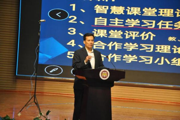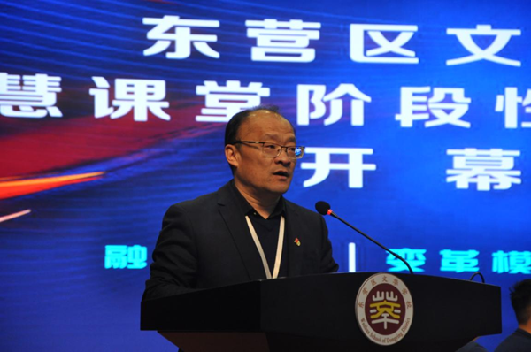 4月7日上午,春光明媚風和日麗,山東省東營市東營區文華學校舉行了一場關于智慧課堂階段性成果的展示活動。本次活動以“問題化學習”理念為指導,以變革課堂教學模式為宗旨,構建智慧學習環境下的課堂新樣態。活動在文華學校報告廳拉開序幕,校長王培福主持會議。
