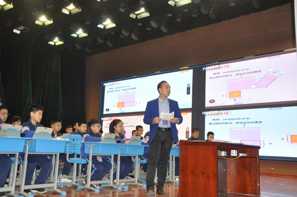 課堂展示環節,竇新輝老師進行了智慧課堂環境下數學新授課案例展示,執教《平方差公式》一課。