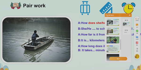 在英語展示課上,王麗梅老師執教“Unit5 How do you get to school?”復習課。復習課對于學生們來說往往不像新授課那樣具有吸引力和挑戰性,王老師卻運用信息化技術手段打造了多種多樣的課堂活動,讓課堂更加生動有趣,激發了學生的學習興趣和學習熱情。