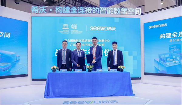 在5月21日于青島舉辦的第56屆中國高等教育展覽會上,教育科技品牌希沃正式與聯合國教科文組織高等教育創新中心(以下簡稱創新中心)簽訂戰略合作協議。