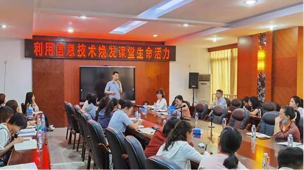 貴州興義市豐都中學教科主任楊波主任,就本校在推進信息技術與學科教學深度融合的工作經驗作出分享和總結。