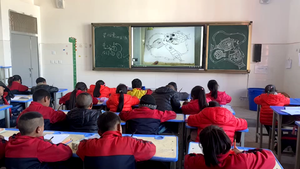 很快,老師們掌握了基本操作,并開始課堂實踐。通過希沃白板,兩位老師首次開設了音樂、舞蹈、體育、剪紙、網絡故事教學、微課教學等學生喜愛的課程。這就像為他們打開了通向精彩世界的大門,孩子們的學習興趣一下子就提高了。他們每天早早來到學校聽故事、做網絡晨讀、看教育動畫片。