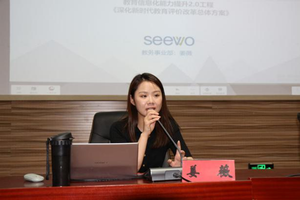培訓第一項,是針對全體教師開展的班級優化大師的高階培訓。本環節由希沃講師姜薇負責講解,并且手把手帶著全體教師一起操作,加深培訓效果,深化教學應用。